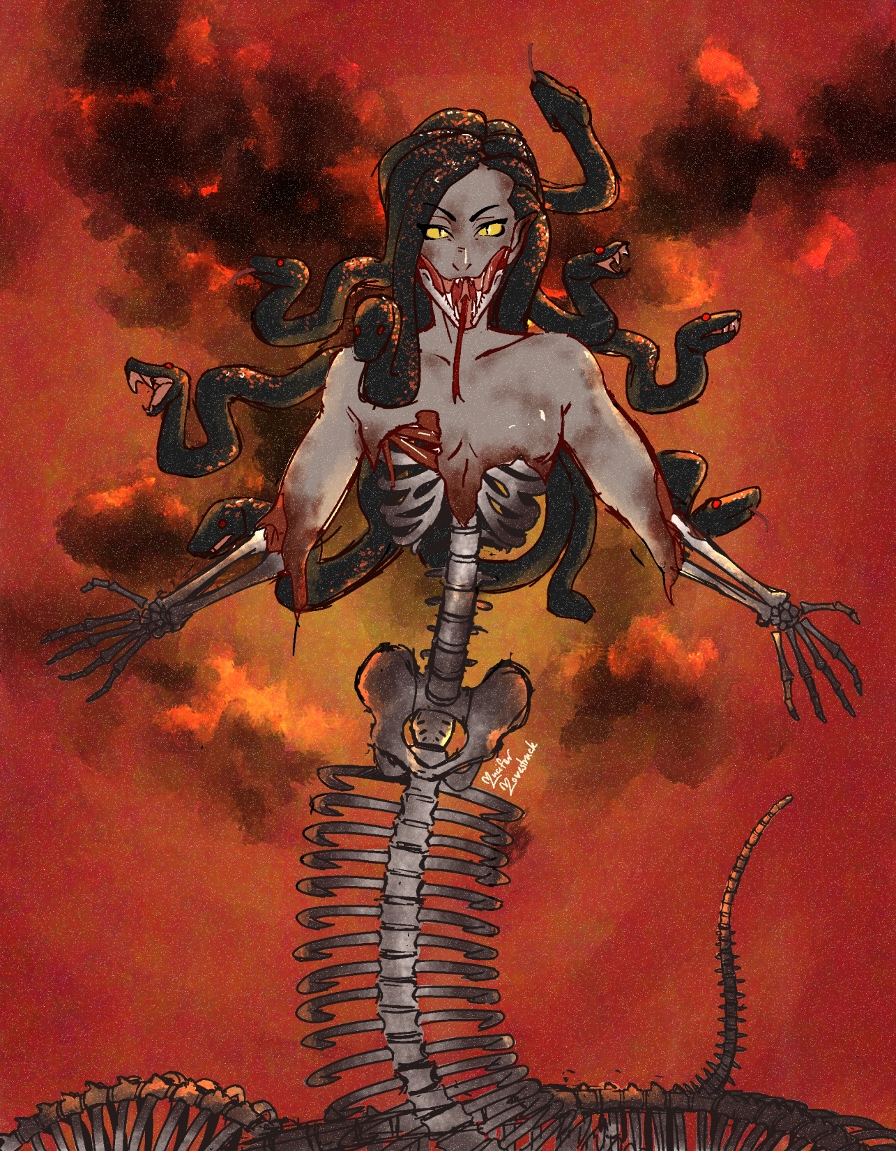 - his shifted form usually appears when he's trying to forcibly possess people and is a fucked up zombie/skeleton naga that looks like this: